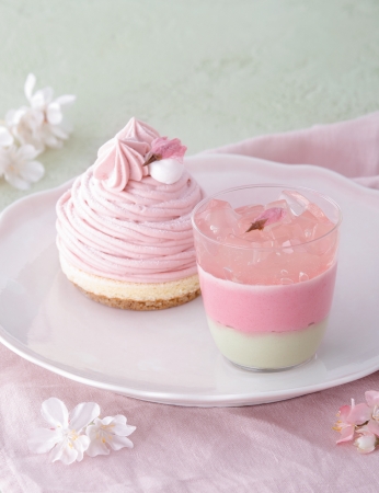 まろやかな白あんミルクムースの上にほんのり桜が香る口どけのよいバタークリームを絞った「モンブランSAKURA」と、桜の花と葉をイメージした淡いピンクとグリーンの層になった「ベリーヌSAKURA」の桜スイーツ2種が今年も登場する。昨年初登場し、大人気の桜スイーツは、お花見や春の手土産におすすめ。