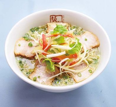 トッピングには、9種類の野菜を160g以上使っている。中でも、味のアクセントとして、ホワイトセロリやみょうがといった「香味野菜」を使い、最後まで飽きさせない味に仕上げた。赤、緑、白といった彩り豊かな野菜は、見た目にも楽しい気分にさせてくれる。