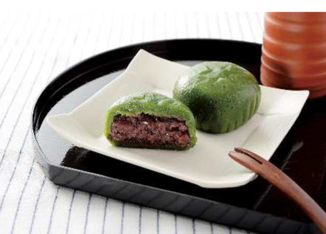 「よもぎ」を練り込んだ餅生地で、すっきりとした甘さに仕上げた「北海道産小豆」のつぶあんを包んだ。よもぎの爽やかな風味と歯切れの良いもちもちとした食感、すっきりとしたあんこの甘みを味わえる和菓子。