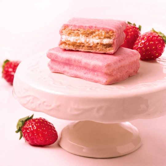 なめらかな口どけの決め手、中にかくれたクリームが今年は変身。いままでのチョコ味から、苺と相性ぴったりのミルク味にリニューアルした。さくっとかむと一気に広がるいちごミルク味。よりガーリーになった美味しさを楽しめる。