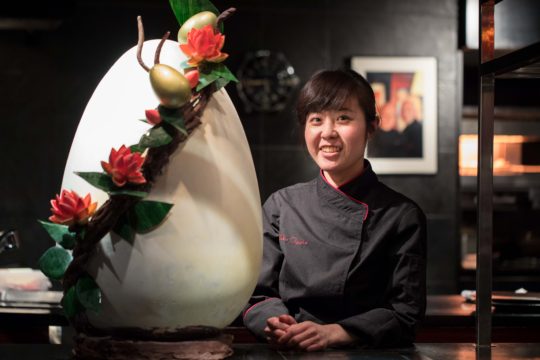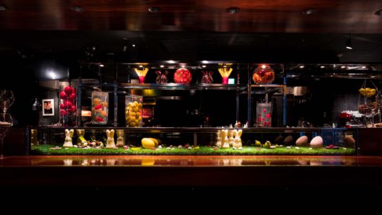 ラトリエ ドゥ ジョエル・ロブションでは、3月中旬頃よりレストランの象徴となるロングカウンターが春の訪れを感じさせるイースターの装いになる。手掛けるのはレストランデセールに魅せられ、シャトーレストラン ジョエル・ロブションのデセール部門のスーシェフを経て、2017年よりラトリエ ドゥ ジョエル・ロブションのシェフ パティシエに就任した緒方洋子。「私自身イースターというイベントが大好きでワクワクした気持ちで毎年この季節を過ごしている。お客様にはイースターをより身近に楽しんで頂けたらという思いで、その年ごとにより新しい表現に挑戦している。」と話す。店内の装飾はもちろん、食材の味わいを尊重しながら遊び心溢れる感性で創り上げるデセールや小菓子のプレゼンテーションは芸術的な美しさ。同店だけでしか楽しむことのできない、魅力的な大人のイースターを堪能できる。