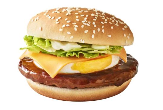 旨みに富んだポークパティに、しょうがとリンゴ、隠し味としてにんにくの風味を加えた 甘辛いてりやきソースを絡め、ぷるぷるたまご、シャキシャキレタス、香ばしいゴマ付きバンズでサンドした。おいしい具材が織りなす味わいが20年を越え愛され続けている、ほおばると思わず笑みがこぼれる。