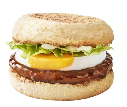 昨年初めて朝マックに登場したてりたまマフィン。大変好評につき、朝だけのてりたまが再登場。ジューシーで風味豊かなソーセージパティに、てりたま同様、甘辛いてりやきソースを絡め、ぷるぷるたまご、シャキシャキレタス、バター風味が感じられる焼き立てのイングリッシュマフィンでサンドした。外がかりっ、中がふんわりのイングリッシュマフィンとじゅわっと口に広がる濃厚なてりやきソースが特徴。