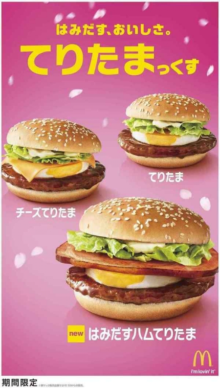 1996年の初登場以来、20年を超えて愛され続けている「てりたま」は、しょうがとリンゴ、隠し味ににんにくの風味を加えた甘辛いてりやきソースを絡めたポークパティと、ぷるぷるたまごが特長の商品。今年はさらに、バーガーからはみだすほど大きな厚切ロースハムが主役の、「はみだすハムてりたま」が新登場する。てりやきソースとぷるぷるたまごの、「はみだす、おいしさ」の商品。さらに、とろけたチーズが絶妙なバランスの「チーズてりたま」、昨年朝マックに初登場した「てりたまマフィン」も再登場する。「てりたま」のおいしさで「元気」をチャージし、新たな生活のはじまりや新たなチャレンジがしたくなる春にそれぞれのチェンジ・チャレンジを応援する。