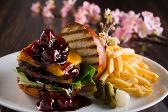 2018年は夜桜の散策の後におすすめな「夜桜バーガー」を始め、桜ランチコースやデザートなど桜にちなんだお料理とお飲物を販売する。
