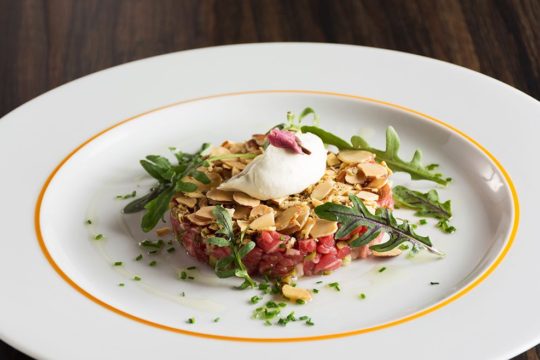 「霜降り桜肉のタルタルステーキとブルーチーズムース」2,500円
