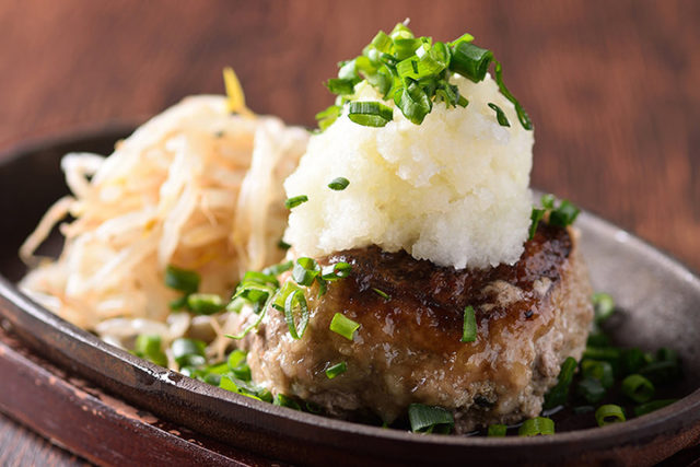 おろしポン酢、デミグラス、トマトソース、ステーキソース、燻製醤油、クリームの6種類から選べるソースも好評。