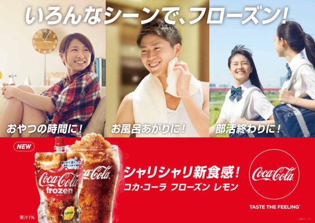 日本市場は年間1,000点近い飲料の新製品が発売され、そのうち数点しか残らない厳しい競争市場環境にある。世界初となる「コカ・コーラ」ならではのおいしさを持つ容器入りフローズン飲料「コカ・コーラ フローズン レモン」は、妥協のない味わいと飽きさせない新しさを追求する日本人でも満足できる一品。