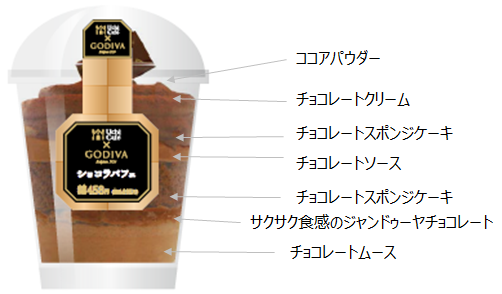 「ショコラパフェ」は、2017年6月からこれまでに発売したローソンとGODIVA社の共同開発商品の中で、最高価格の税込450円となる。