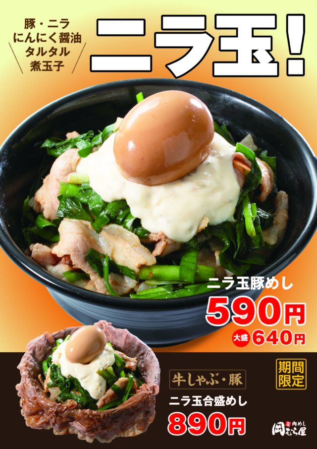 とんかつ専門店「かつや」などを展開するアークランドサービスホールディングス株式会社の子会社、アークダイニング株式会社は、都内で3店舗展開している肉めし「岡むら屋」にて “ニラ玉豚めし”を本日、4月23日(月)から期間限定で販売する。