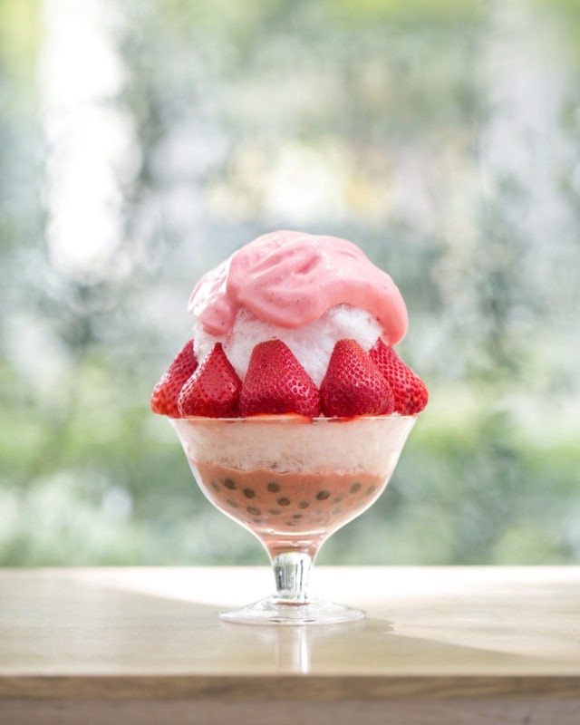 ひと口ごとに繊細な口溶けが感じられる細かく削ったかき氷には、"ふんわり、とろける"エアリーな食感のエスプーマをたっぷりかけ、"もちもち"食感のタピオカをトッピング。