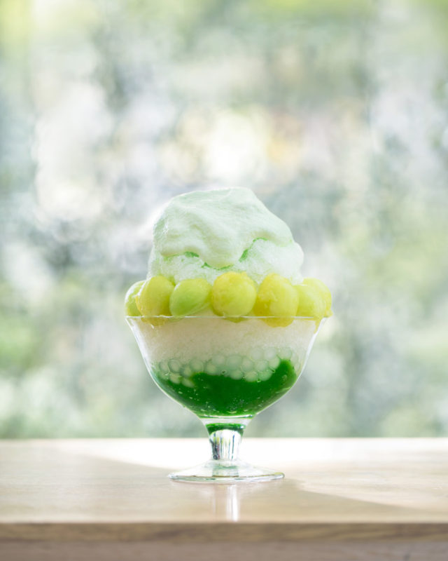 メロンの風味を損なうことなく優しい甘味を活かして滑らかに仕上げたふわふわのエスプーマとかき氷の組み合わせは、一度食べるとクセなる美味しさ。メロンジュレと"もちもち"のタピオカを合わせると絶妙な食感が生まれる。メロンが持つ甘さとさっぱりとした初夏の爽やかさ感じられる、リッチな味わいのかき氷。
