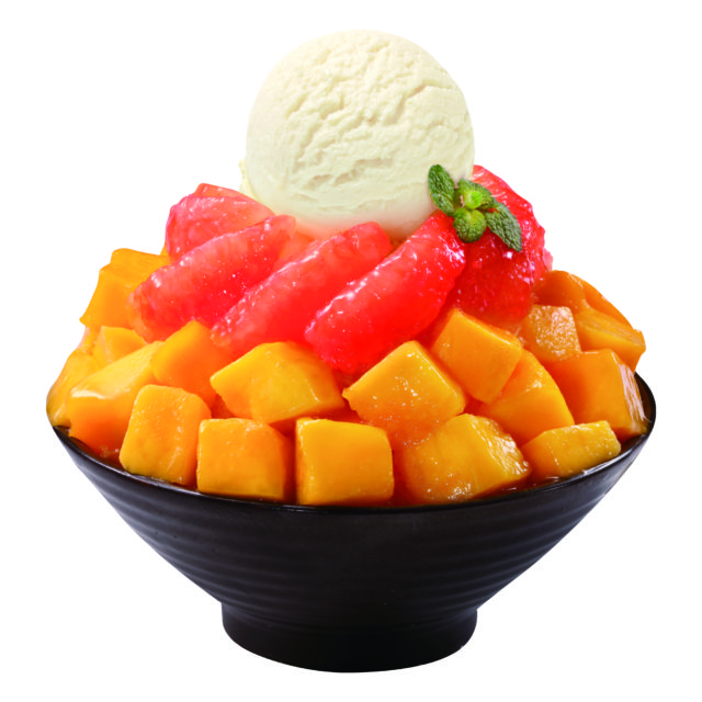 パウダースノーのようなふわふわのミルクかき氷に、ジューシーなアップルマンゴーとグレープフルーツをたっぷりトッピングし、ヨーグルトアイスをのせた一品。この季節にぴったりなメニュー。