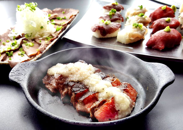 ・肉寿司(松阪牛ローストビーフの握り/炙り鶏わさびの握り/牛タンの炙り寿司)
