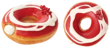 フリーズドライのストロベリー粒が甘酸っぱさを際立てるドーナツとなっている。「ブラン ドーナツ」になめらかなヨーグルトクリームを入れ、ストロベリーとラズベリーの果汁入りアイシングとミルキーなホワイトチョコを重ねた。