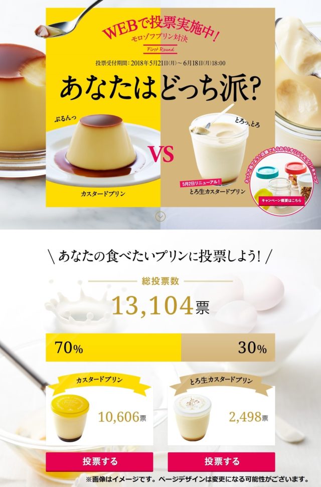 「あなたはどっち派?『モロゾフプリン対決』」と題して、モロゾフのホームページにてプリンに関する一般投票を実施する。