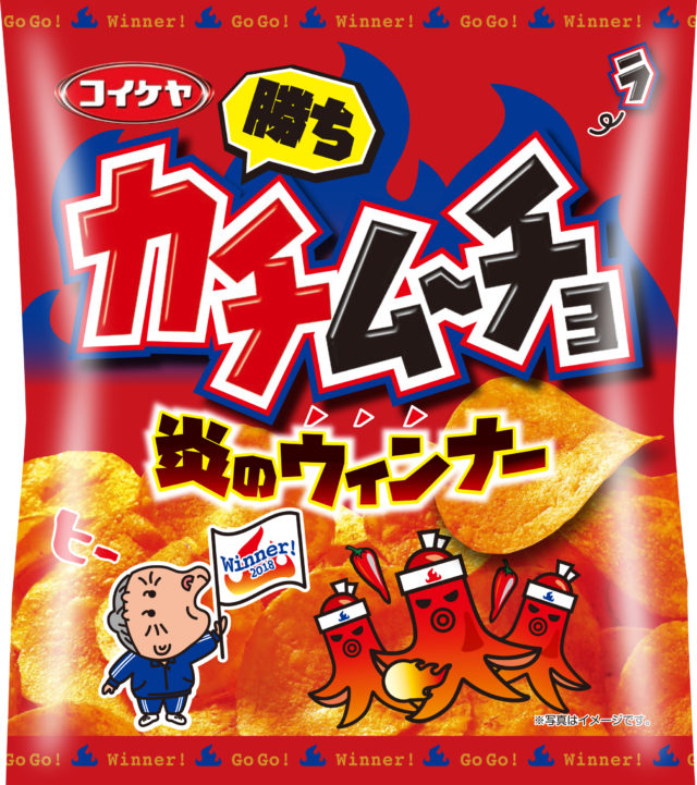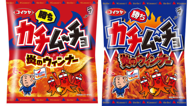 また、勝利に向かって燃える情熱を辛さに込め、肉の旨みと炎を思わせる辛さが口の中で攻め上がる、「カチムーチョチップス 炎のウィンナー」、「スティックカチムーチョ 炎のウィンナー」が完成した。