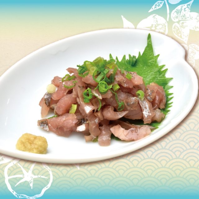 内容:脂の乗ったアジのたたき。これからの季節にちょうどいいさっぱりとした一品。