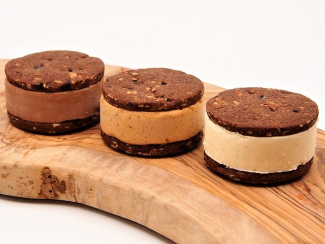 次に贈る新作はガナッシュ作りの技術でなめらかに仕上げた濃厚アイスムースをホロッと口どけのよいクッキーで挟んだクッキーサンドアイス。