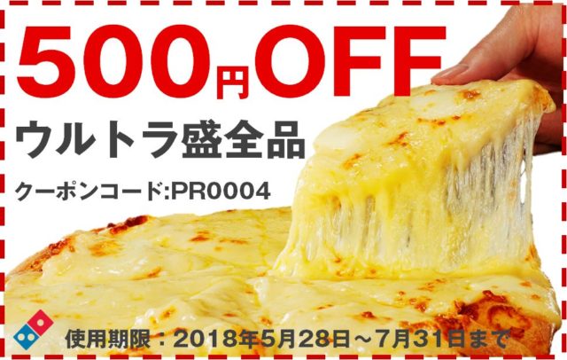 5月28日(月)から7月31日(火)まで何回でも使える「ウルトラ盛」が500円OFFになるクーポンを発行。