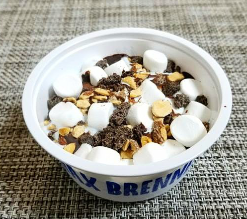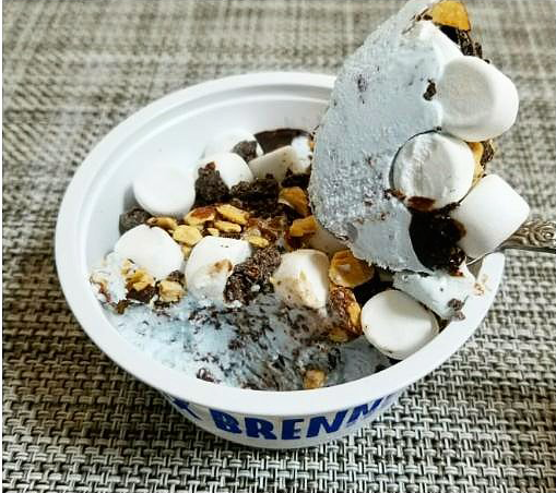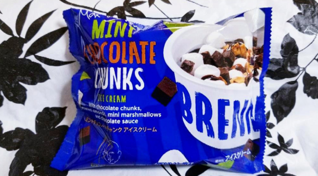この商品は、マックスブレナー夏限定の人気メニュー『チョコミントアイスピザ』を表現しているそうです。マシュマロ・焼きショコラ・ローストアーモンド・バタークッキー・チョコペースト・ミントチョコレートアイスクリームが入った贅沢アイス。フワッとしたマシュマロや、ゴロゴロとした色んな食感が楽しくて美味しいです!