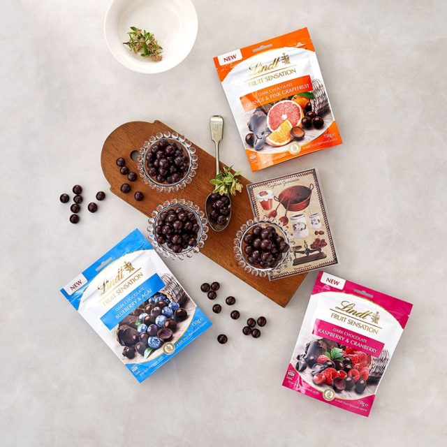 ●いつでもどこでも気軽にその美味しさを楽しめる、リンツ初のスナックタイプのチョコレート「センセーションフルーツ」は、果実味あふれる濃厚なフルーツゼリーを上質なダークチョコレートで包み込み、ぎゅっと一粒に凝縮させた贅沢な味わい。