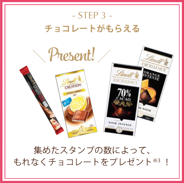 集めたスタンプの数によって、もれなくチョコレートをプレゼント。