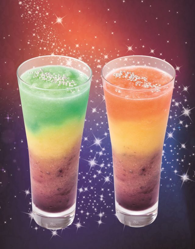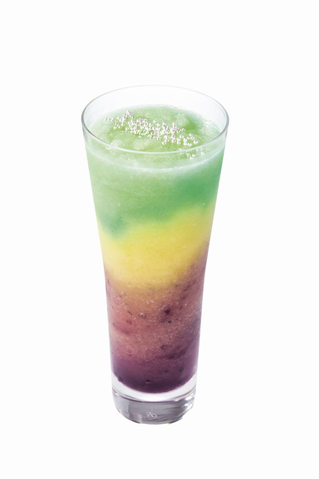 そして、『ORIHIMEグラニータ』は“ざくろテイストのシロップ”を、『HIKOBOSHIグラニータ』は“オレンジテイストのシロップ”を味わいのアクセントに加えてミキシングすることで、七夕の夜空のような印象的なグラデーションに仕上げるとともに、銀色のアラザンを天の川に見立ててトッピングすることで、トータルで七夕の世界感を演出したフォトジェニックなグラニータが出来上がった。