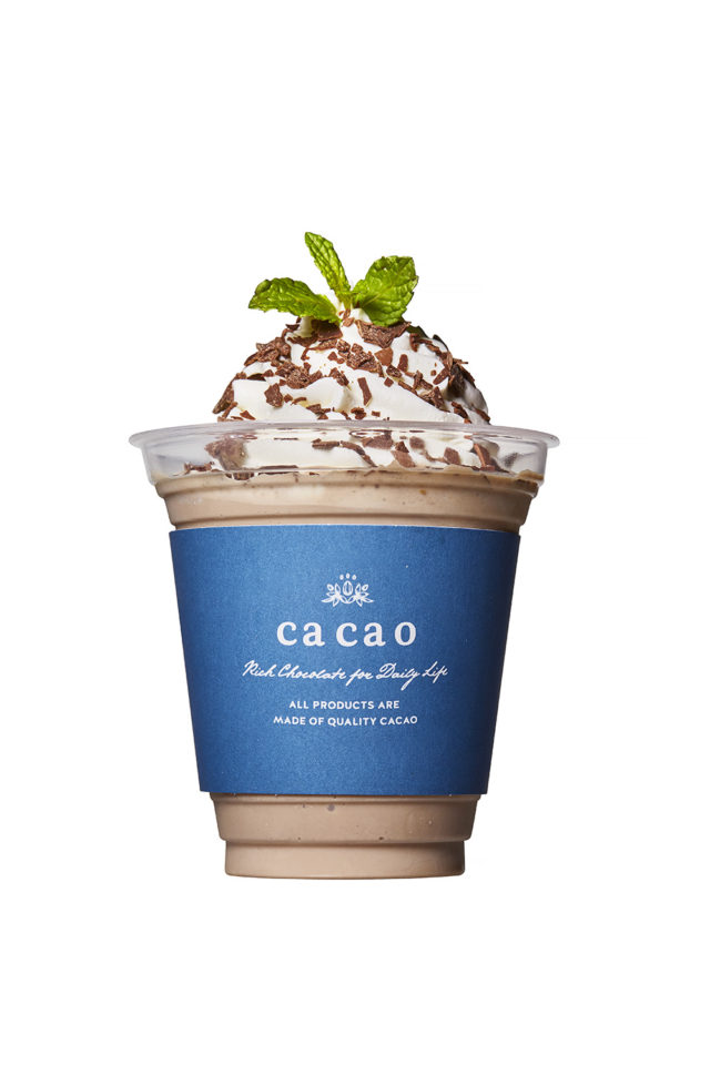 「生チョコっぺ」は、ca ca o看板商品のアロマ生チョコのフローズンドリンク。生チョコならではの香り、口どけの良さを感じられるよう、チョコレートをふんだんに使用。生クリームと牛乳の配合や、食感が残るよう氷の粗さも細かく計算して作っている。東京サロンデュショコラでは3時間以上待ちとなるなど、夏限定の人気商品となっている。