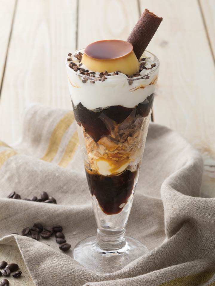 自家製のコーヒーゼリーと濃厚なベルギー産チョコレートのアイス、カカオニブで仕上げたプリンとクリームのハーモニーが楽しめる。⾃家製のコーヒーゼリーは、モロゾフオリジナルブレンドコーヒーを丁寧に抽出し、コクのあるほろ苦い味わいに仕立てた。