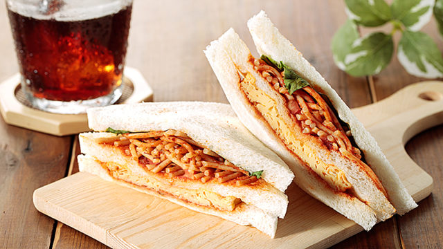 同じく6月13日に発売される『オムレツナポリタンサンド』。オムレツは自家製、そしてナポリタンは昔ながらの味わいになっている。