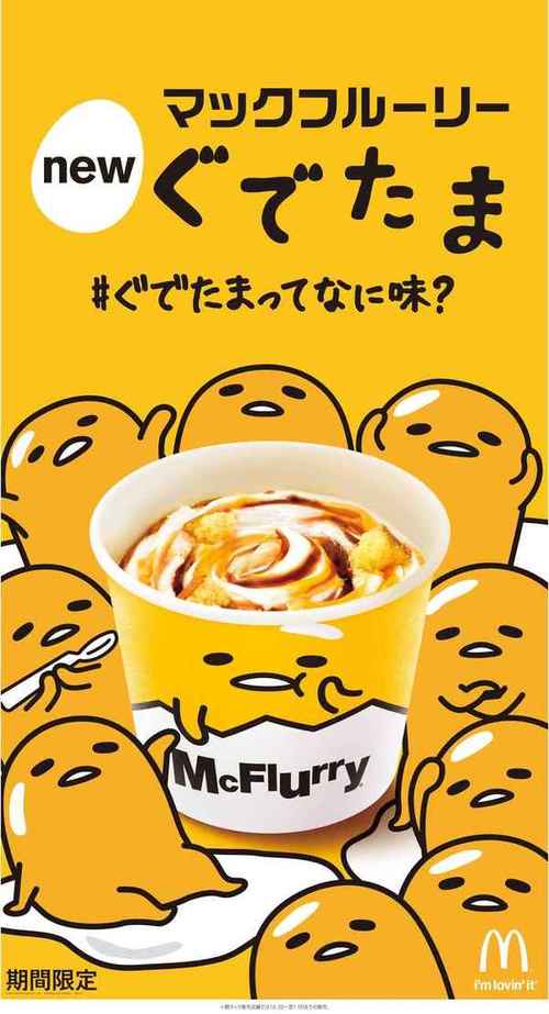 日本マクドナルド株式会社は、マクドナルドの人気スイーツ「マックフルーリー」とサンリオの大人気キャラクター「ぐでたま」がコラボレーションした新商品「マックフルーリー ぐでたま」を、6月8日(金)より全国のマクドナルド店舗で期間限定販売する。