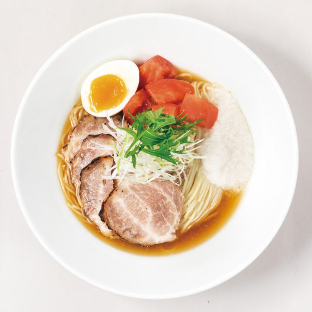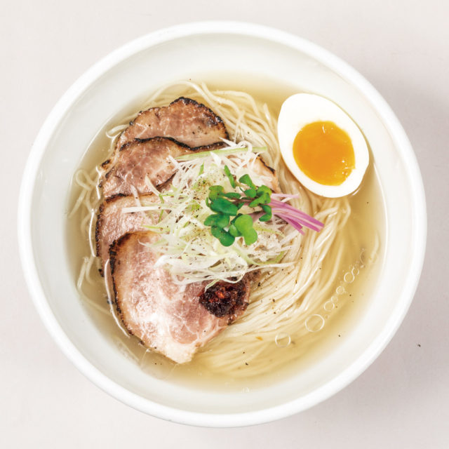商品特徴:沸騰直前温度でじっくり火を通したしっとりチャーシュー、ハマグリと鰹を合わせた特製塩かえしの深い旨味が凝縮された清涼感あふれるスープ。ラーメンは食べたいけど、夏場は暑い。そんなお客に最後の一滴まで飲み干してもらいたい、さっぱりとした一杯となっている。