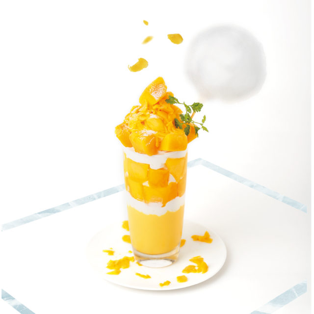 マンゴーを贅沢にトッピング。あっさりとヨーグルト入りの自家製スムージーに、アクセントとしてマンゴーと相性の良いココナッツクリームを合せた。マンゴー本来のとろける甘さを存分に楽しめる。