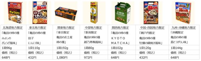 ※地域限定商品の製造販売元アジカル㈱は亀田製菓㈱グループ。