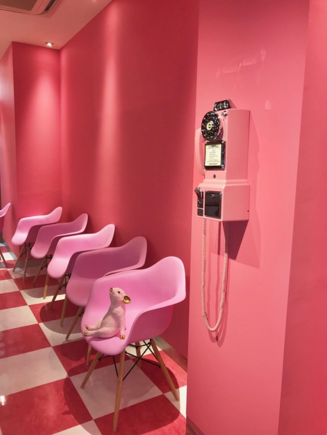 店内は壁一面ピンクで飾られた可愛い部屋をイメージした空間