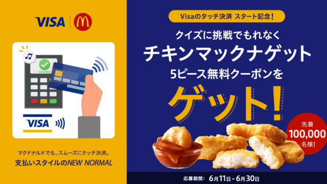 ●タイトル:Visa × マクドナルド 「タッチ決済」スタート記念キャンペーン