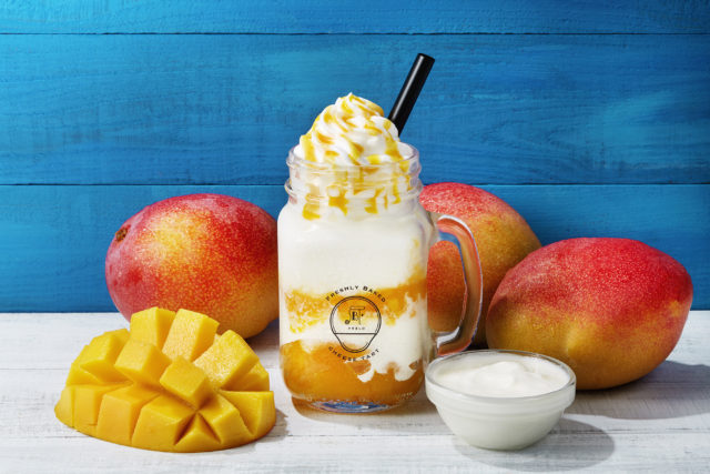 マンゴーとヨーグルトの香りが爽やかで後味スッキリ、カジュアルカフェver. 南国トロピカルな味わいのスイーツドリンク。