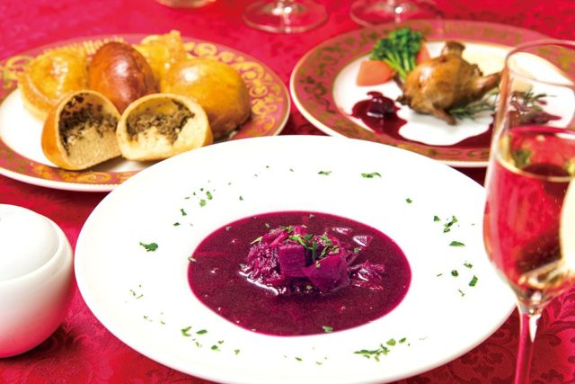 日本初上陸の老舗ロシア料理レストラン「ゴドノフ東京 丸ビル店」ではボルシチなどの定番メニューはもちろん、東京店だけのオリジナルメニューも楽しめるようになっている。