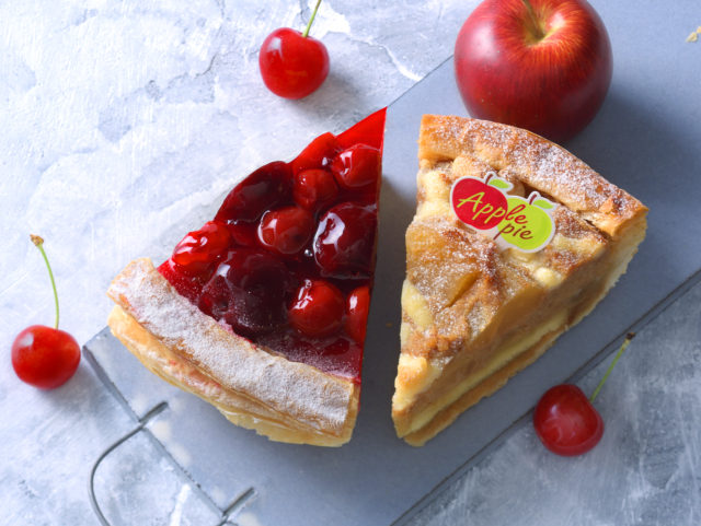 今回発売する新作スイーツは、赤りんごの甘みと青りんごの爽やかな香りをいかした、甘さ控えめの「夏に食べたいアップルパイ」と、ほどよい酸味のサワーチェリー&濃厚な味わいのスイートチェリーを使った「さわやか夏のチェリーパイ」の2品。甘酸っぱくやさしい食感の果肉に、風味ゆたかなパイが調和した、パティシエこだわりの味わいとなっている。