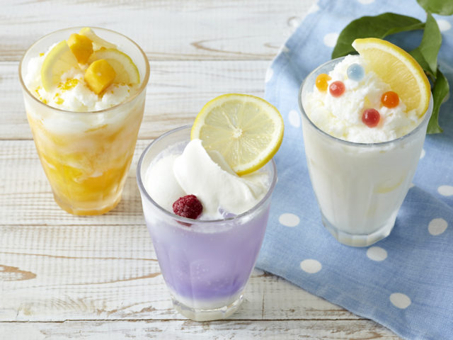 昨年好評を博した「カルピス」のシャーベットラッシーに加え、ブルーの爽やかな色が印象的な新作のひんやりドリンク 「『カルピス』のブルーソーダフロート ソルティチーズ」が登場。