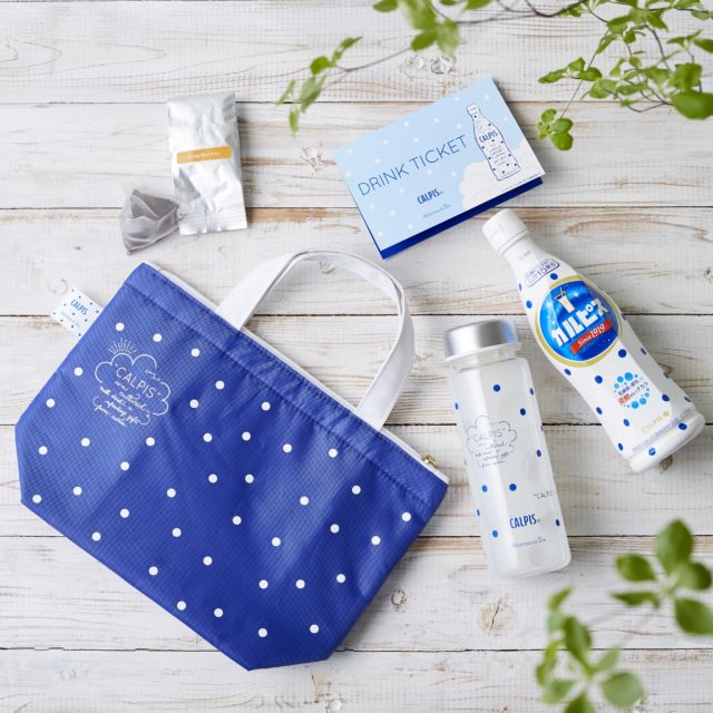 限定デザインのオリジナル保冷バッグに「カルピス」のデザインティーボトル、「カルピス」、