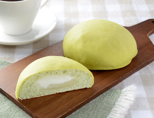 メロン果汁の入ったしっとりとした生地に、しっとりとした食感のメロン皮を被せた。メロン果汁を使用したクリームを包み、口どけのよいホイップを注入した、メロンづくしの贅沢なメロンパンとなっている。