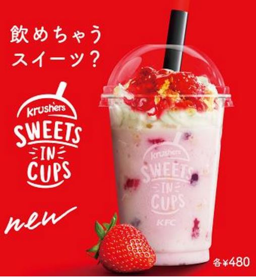 日本KFCホールディングスグループの日本ケンタッキー・フライド・チキン株式会社では、季節ごとにさまざまな味と食感が楽しめる冷たい飲むスイーツ「Krushers(クラッシャーズ)をリニューアルし、3 種の新フレーバー「Krushers ストロベリーミルフィーユ」、「Krushers クラシックショコラ」、「Krushers いよかんサマージュレ」を、本年6月21日(木)から、全国のケンタッキーフライドチキン555店で発売する。