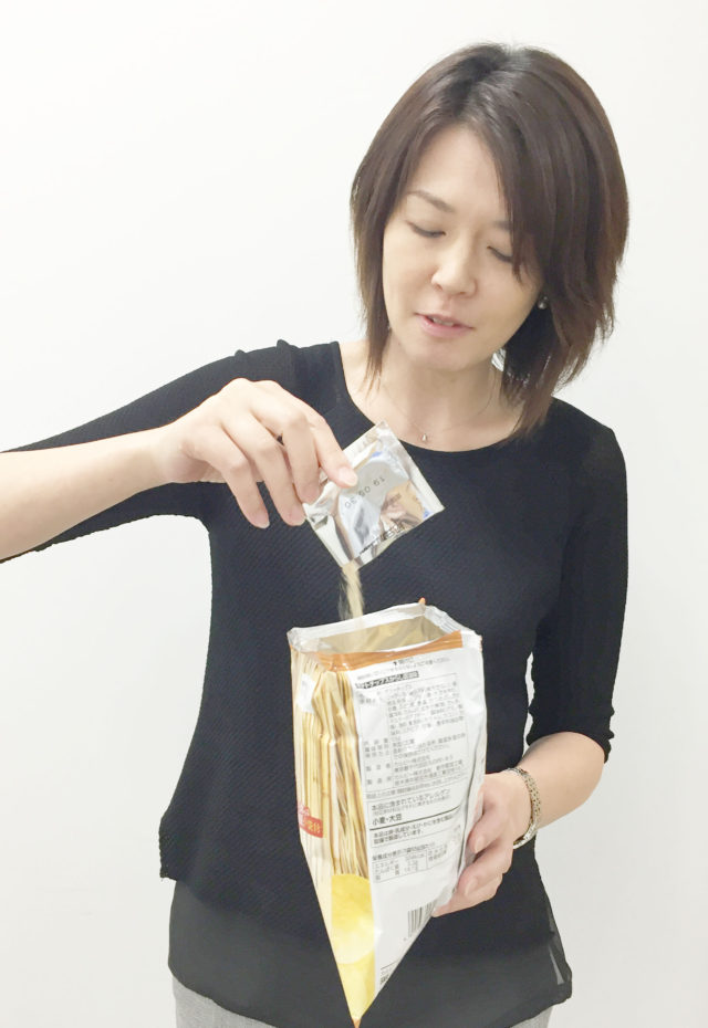 納豆味のポテトチップスは初めての試みで、納豆とチップスの味や適切な量の選定等、試行錯誤を繰り返し、20以上の試作品を作りました。納豆フレークをかけるチップスの味は納豆に合う辛子とだし醤油のタレをイメージして仕上げました。私自身、納豆のタレが大好きなのですが、実はこのチップスも納豆フレークをかけずにそのままでも美味しいんですよ。ぜひ納豆フレークをかける前に、チップスを一口味わってみてください。お客様のお好みで納豆フレークの量を調節しながら味わっていただくなど、ポテトチップスと納豆という異色の組み合わせの面白さと美味しさを楽しんでいただけたらと思います。