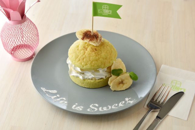 17年連続ハワイNo.1バーガー賞受賞の「テディーズビガーバーガー」より、メロン風味のオリジナルバンズに、バナナとホイップクリームをたっぷりとはさんだ「バナメロンバーガー」を発売開始した。