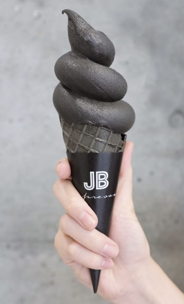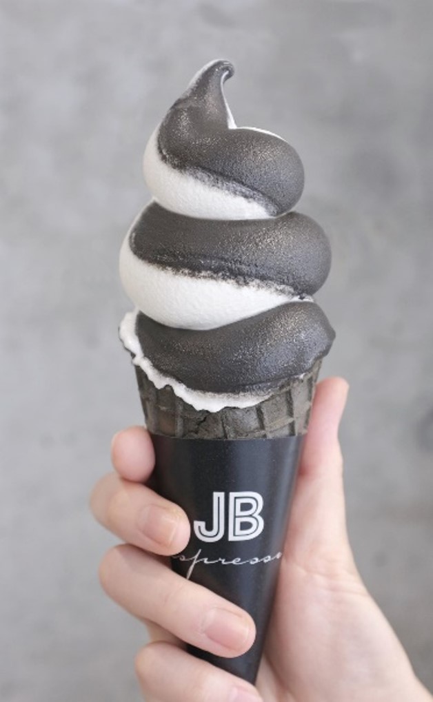 驚きの見た目とは裏腹に、スペイン産3種のチョコレートの他に食用の竹炭を使用した独特の甘みが特徴の『BLACK』と、コーヒーとも相性の良い、濃厚なジャージー牛乳を使用した『WHITE』と、どちらも気になって選べないというお客におすすめの『MIX』の3つのメニューをJB ESPRESSO 新道東駅前店限定(毎日各色50個限定)で、各450円(税込)にて販売している。