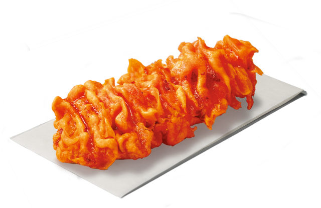 「レッドホットクリスピー」は、国内産のやわらかい鶏胸肉をサクサクとした食感に揚げ、焙煎唐辛子の入ったコクのある辛口オイルソースをかけた骨なしチキン。