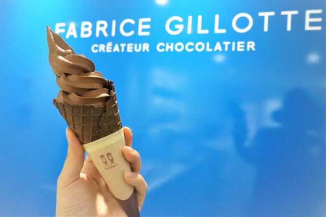 カフェ新作の「チョコレートソフトクリーム」は、ファブリス・ジロット自身が厳選したカカオ豆を調合したクーベルチュールを使用しているため、その甘い薫りのノートであなた笑顔を引き出す。