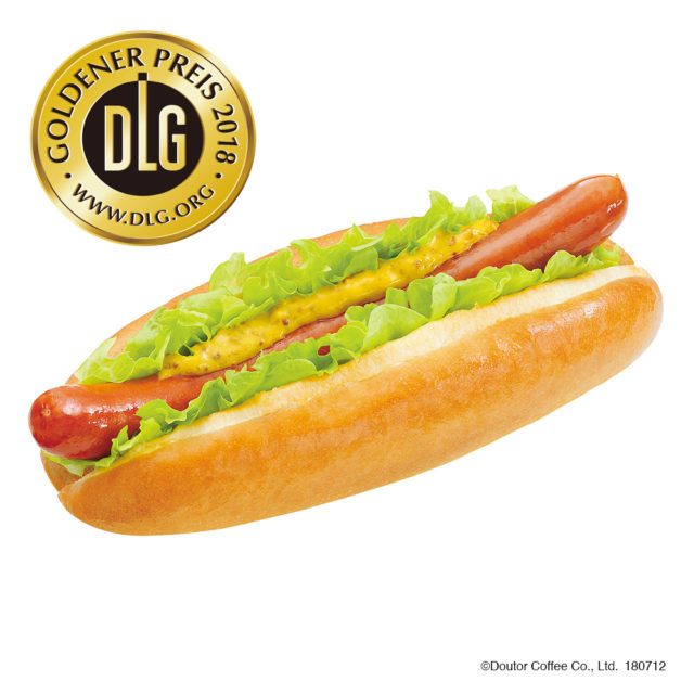 レタスドックも新しくなったソーセージを使用。コクと辛みが絶妙な、オリジナルソースとの相性も抜群。シャキシャキのレタスの食感と共に。このソーセージは、ハムやソーセージなどのクオリティを競う「ドイツ農業協会(DLG)主催、世界規模の加工食品の品質競技会」で、2018年度、最高評価である金賞を受賞。